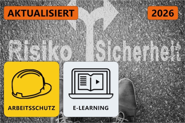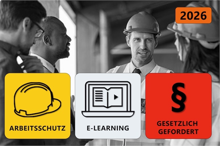 Darüber hinaus bieten wir die vom Gesetzgeber geforderte, regelmäßige Unterweisung der Mitarbeitenden im Arbeitsschutz als hocheffizientes E-Learning an.